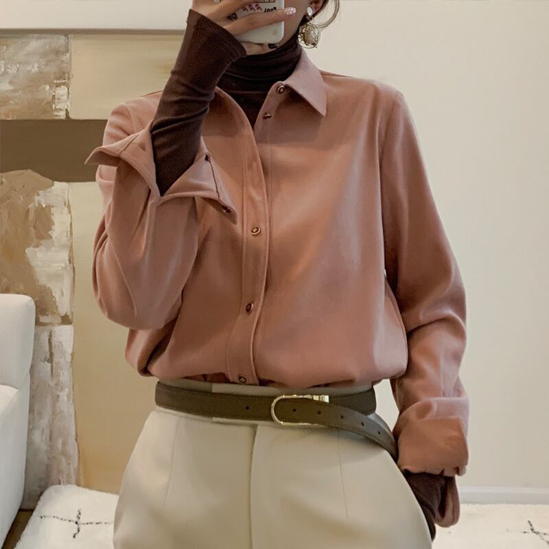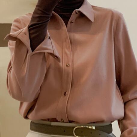ブラッシュドシャツ トップス シャツ ブラウス ミディアム丈 袖あり パフスリーブ 襟付き ポロカラー ストレート 0 大人可愛い きれいめ シンプル カジュアル おしゃれ かっこいい レトロ 大人可愛い 大人女子 こなれ感 ラフ キュート クール モダン 抜け感 無地 秋 冬 レディース 女性用 OL 通勤 学生 通学 デート お出かけ 休日 旅行 着回し 普段使い ファッション コーデ スタイル 新作 トレンド 流行 インスタ映え イメチェン 好感度 イメージアップ 注目 大特価 話題 新入荷