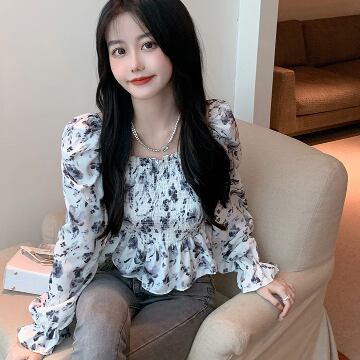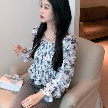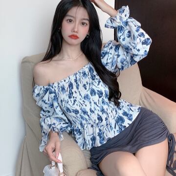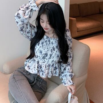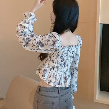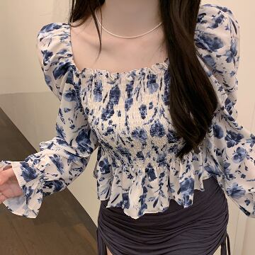 2wayデザイン パワーショルダー オフショルダー シャーリング クロップド へそ出し フローラル ペプラム トップス ブラウス ショート丈 長袖 ボリューム袖 キャンディスリーブ スクエアネック スリム タイト 細身 大人可愛い シンプル おしゃれ セクシー 花柄 フラワー柄 伸縮性 春 夏 レディース 女性用 女の子 デート お出かけ 女子会 休日 リゾート 旅行 海 普段使い 韓国系 オルチャン コーデ スタイル モテ 新作 S M L XL 2XL 3XL 大きいサイズ ブルー グレー
