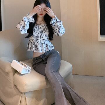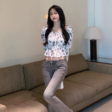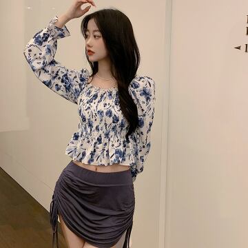 商品名にはとても長い名前がついてますが、まとめると「2WAYデザインの可愛いトップス」。オフショルダーも、シャーリングタイプも楽しめてしまう、2WAYデザインの優れものです。女性らしいフラワープリントの柄は春夏ファッションにピッタリで、セクシーなへそ出しデザインが主張がありますが、丈はショート丈で、腰高く着た時もスッキリと見えるようにデザインされています。ボリュームのある袖が、華奢で細身な体型の方でも着こなしやすいタイプに仕上がっています。