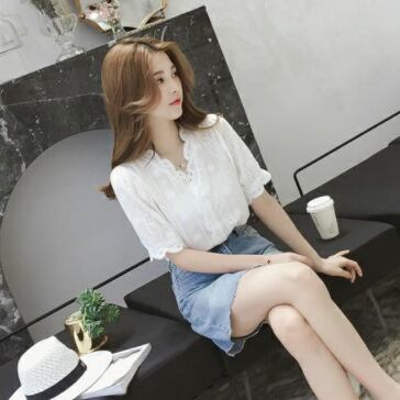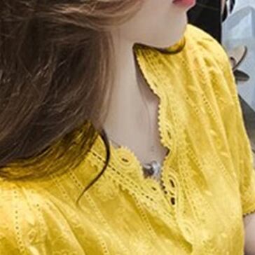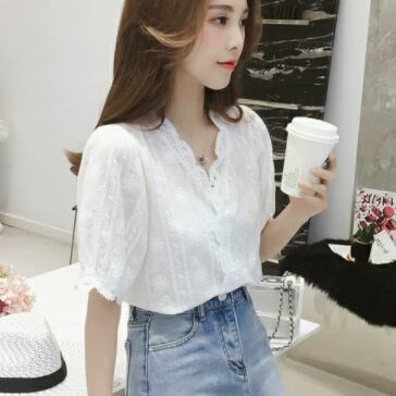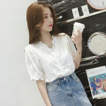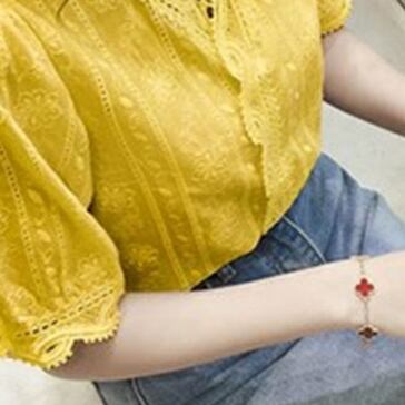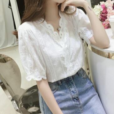 この夏、トップスに欠かせないアイテムはこの半袖ブラウスです!Vネックとパフスリーブが女性らしさを演出し、レースと刺繍がエレガントな雰囲気を出しています。透け感のあるシースルー素材が大人可愛い印象を与え、上品でおしゃれな装いにぴったりな一枚です。無地でシンプルなので、カジュアルにもフォーマルにも着回し自在。流行に敏感なあなたには定番の一枚として、ファッションアイテムとしてもおすすめです。