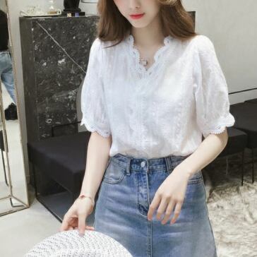 トップス ブラウス 半袖 パフスリーブ Vネック レース 刺繍 透け感 シースルー かわいい 大人可愛い きれいめ 大人 上品 おしゃれ お洒落 レトロ 大人可愛い 大人女子 キュート ガーリー セクシー エレガント 主役級 存在感 無地 春 夏 10代 20代 30代 40代 50代 学生 デート お出かけ 女子会 お泊まり 休日 リクルート 就活 着回し 韓国 韓国系 ファッション コーデ スタイル モテ 新作 定番 送料無料 トレンド 流行 インポート 海外 人気 女子力 大人カジュアル コスパ