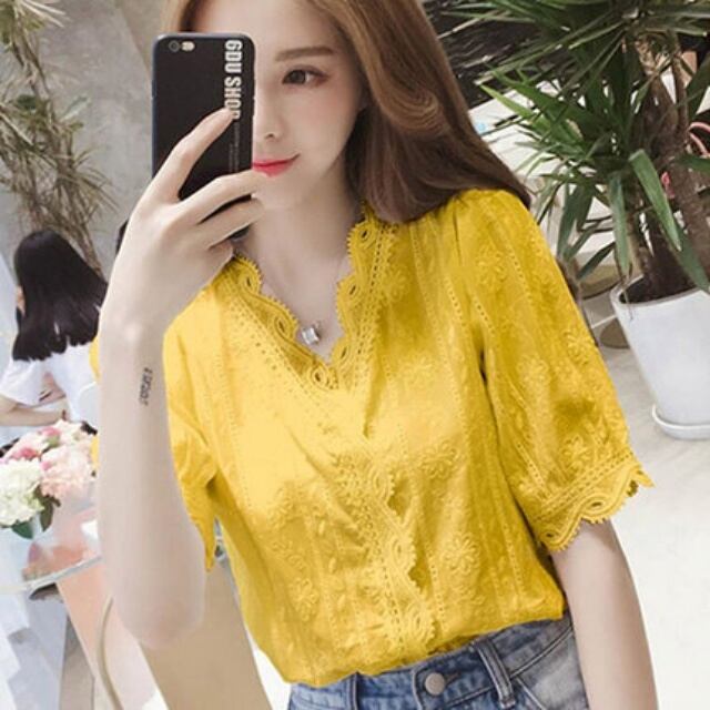 レースや刺しゅうが可愛らしいトップスです。