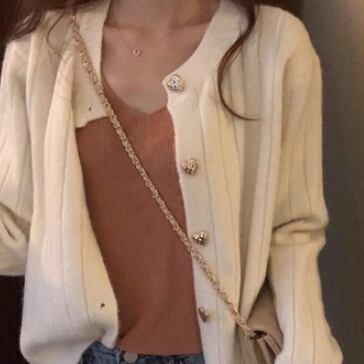 トップス カーディガン 長袖 ラウンドネック リブ ニット ビジュー かわいい 大人可愛い きれいめ 大人 おしゃれ お洒落 大人可愛い 大人女子 キュート ガーリー エレガント 主役級 存在感 春 秋 10代 20代 30代 40代 レディース 女性用 ママ 女の子 学生 デート お出かけ 女子会 お泊まり 休日 着回し 普段使い 重ね着 韓国 韓国系 ファッション コーデ スタイル モテ 新作 定番 送料無料 トレンド 流行 インスタ映え インポート 海外 人気 女子力 大人カジュアル