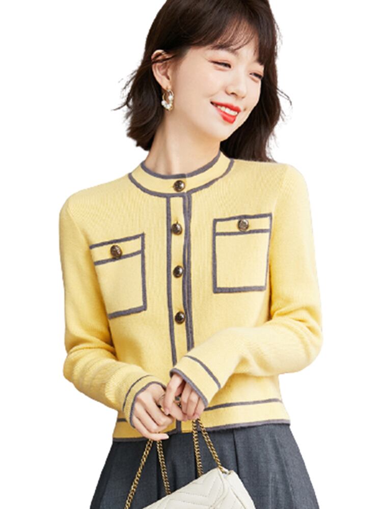 トップス カーディガン 長袖 ラウンドネック ニット バイカラー かわいい 大人可愛い きれいめ 大人 おしゃれ お洒落 大人可愛い 大人女子 キュート ガーリー 個性的 エレガント 主役級 存在感 春 秋 10代 20代 30代 40代 レディース 女性用 ママ 女の子 学生 デート お出かけ 女子会 お泊まり 休日 着回し 普段使い 重ね着 韓国 韓国系 ファッション コーデ スタイル モテ 新作 定番 送料無料 トレンド 流行 インスタ映え インポート 海外 人気 女子力 大人カジュアル パイピング