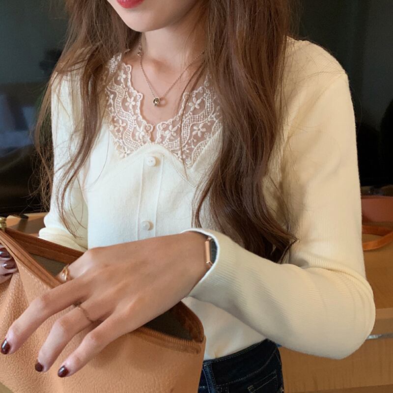 レースVネックニットシャツは、OLや学生、幅広い年代の女性にお勧めです。秋と冬にピッタリの一枚です。温かく、そして心地よい一日にしてくれますよ。あなた自身をより素敵にみせるために、是非このレースVネックニットシャツをお試しください。