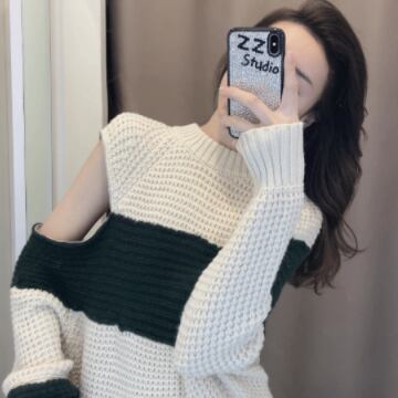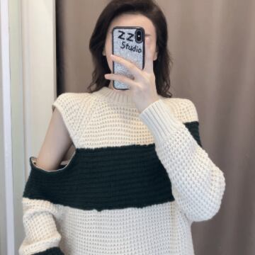オフショルセーターは、スリムなシルエットで上品に着こなせる一枚。