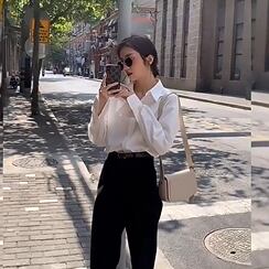 人生に必要な一着、ホワイトシャツ。今季は、襟付き・ポロカラー・ストレートシルエットのミディアム丈がトレンドです。当店自慢の一着は、どんな場面でもマッチするシンプルデザインで、大人女性にふさわしい上品さと、抜け感を感じさせるコーディネート力が魅力です。袖あり・前開き・ボタン付きと、細かなディテールにもこだわっています。