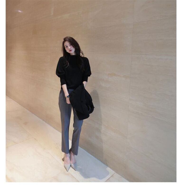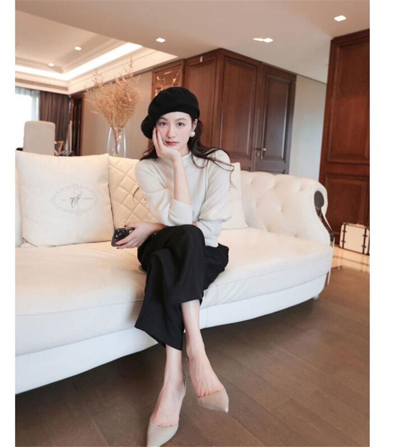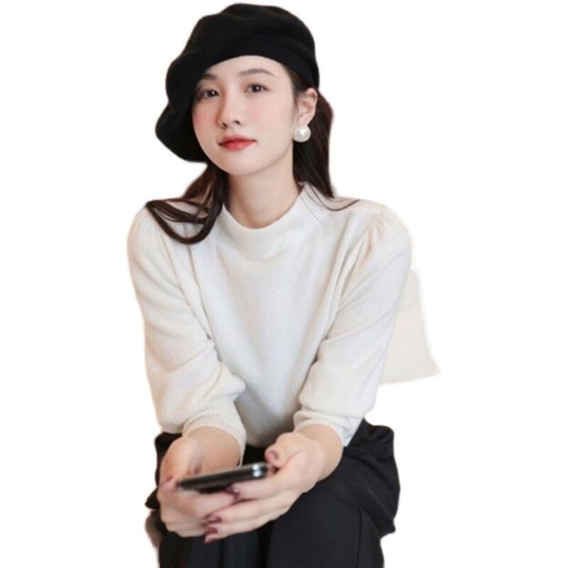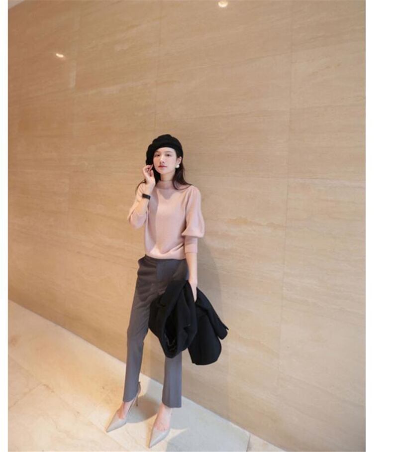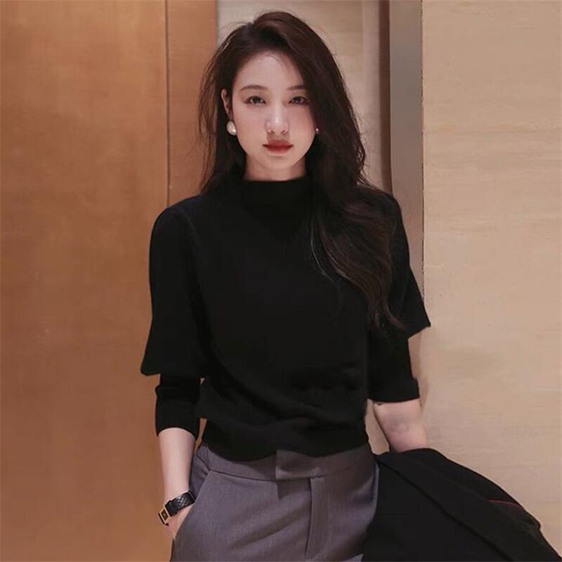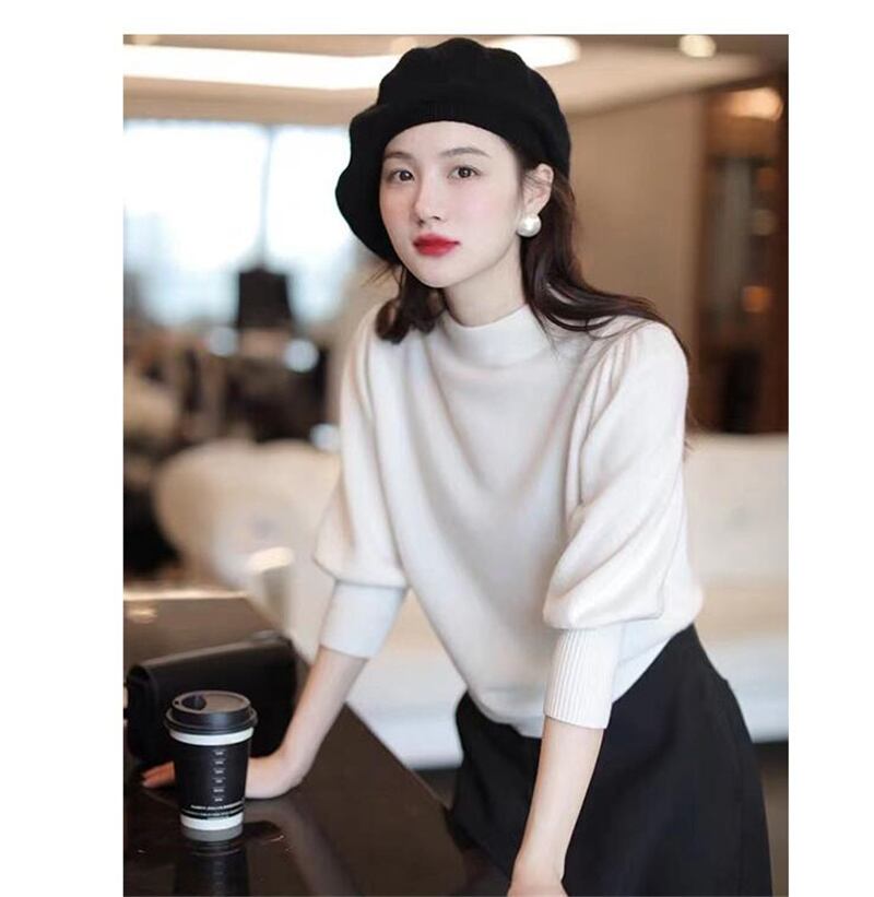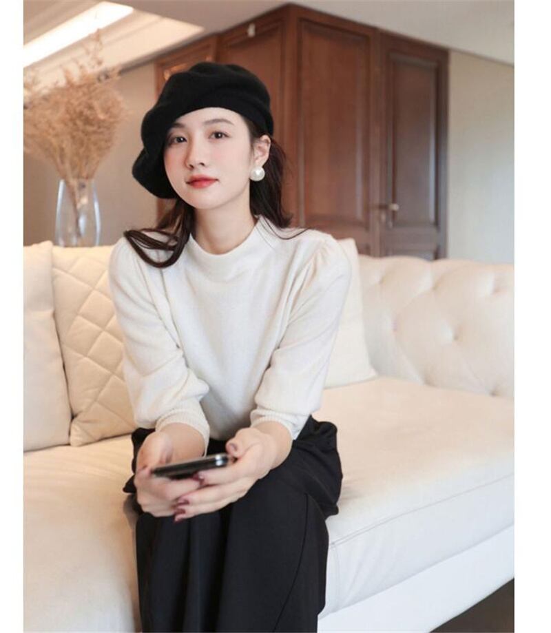 シンプルでエレガントなハイネックニットシャツです。