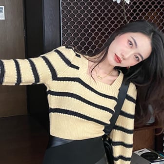鎖骨ラインがきれい見せのスクエアネックニットシャツです。