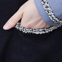 モノトーンカラーを組み合わせた色合いのライン使いがポイントで、ほどよいきちんと感のあるデザインです。