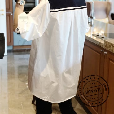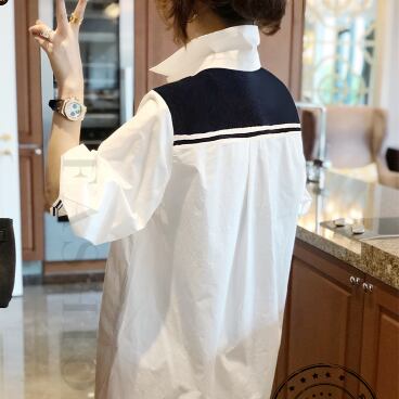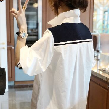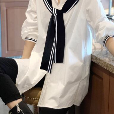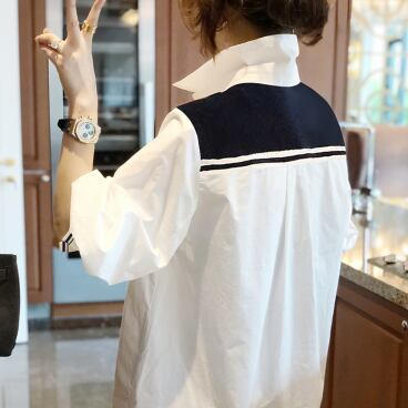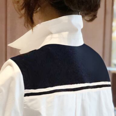 襟が付いたシャツで、スタイリッシュな印象を与えます。着る人の体型に合わせて選べる、細身のストレートシルエットが特徴的です。シンプルで飽きのこないデザインは、大人の女性に特におすすめ。ホワイトカラーは、春夏だけでなく秋冬も使い回せる優秀アイテムです。