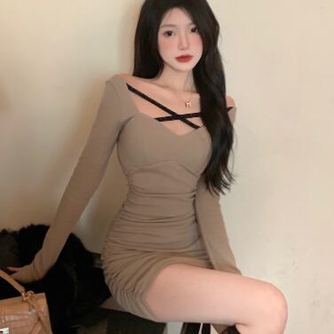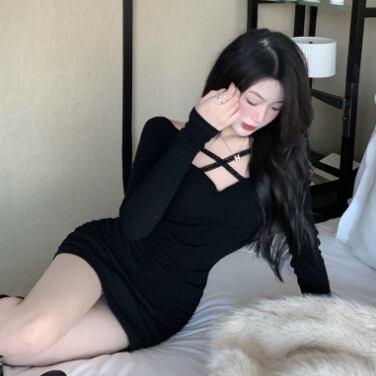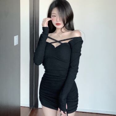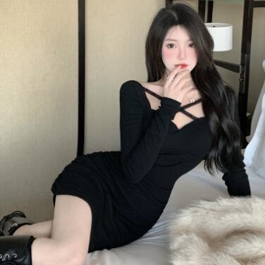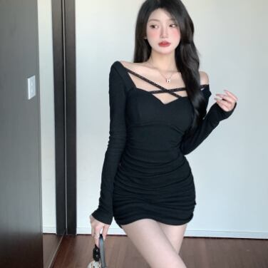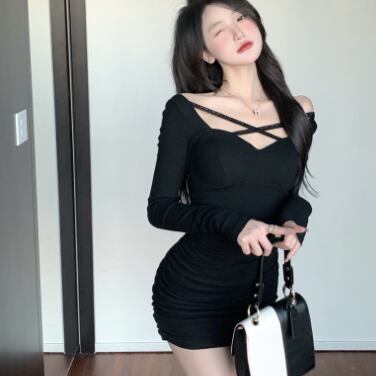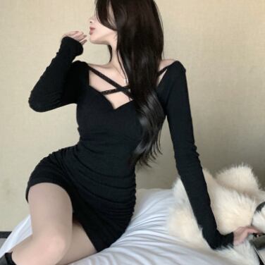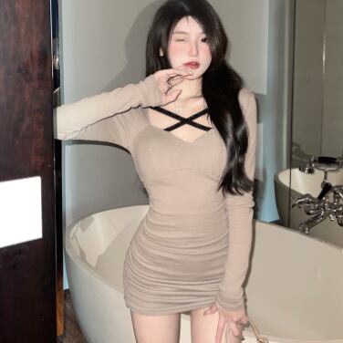 ミニワンピース クロスストラップ セクシー ブラック 黒 カーキ ミニ丈 ショート丈 袖あり 長袖 スリム 細身 タイト 大人女子 大人 上品 おしゃれ かっこいい クール エレガント デイリーウェア レトロ レトロ風 こなれ感 個性的 デザイン 主役級 存在感 無地 秋 オータム 冬 ウインター 20代 10代 レディース 女性用 デート お出かけ 女子会 食事会 イベント リゾート 旅行 パーティ ファッション コーデ ワンサイズ 大人カラー