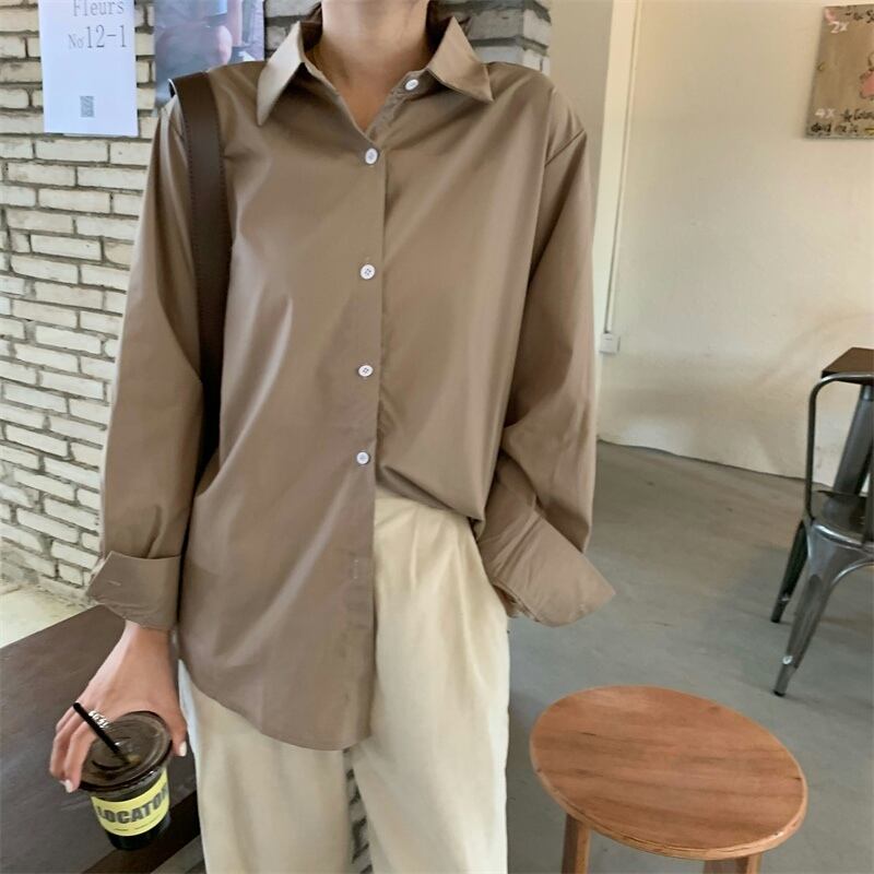 カラーシャツ トップス シャツ ミディアム丈 長袖 白 ホワイト 青 ブルー ベージュ シャツ袖 ポロカラー ストレート ボタン かわいい 大人可愛い きれいめ シンプル カジュアル 大人 おしゃれ お洒落 レトロ 大人女子 こなれ感 ラフ 抜け感 無地 春 秋 10代 20代 30代 通勤 通学 デート お出かけ 公園デビュー 女子会 お泊まり 休日 旅行 ガーデン レストラン 着回し 普段使い 重ね着 ファッション コーデ スタイル 定番 流行 フリーサイズ ゆったり 色展開 大人カラー 春カラー