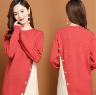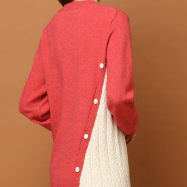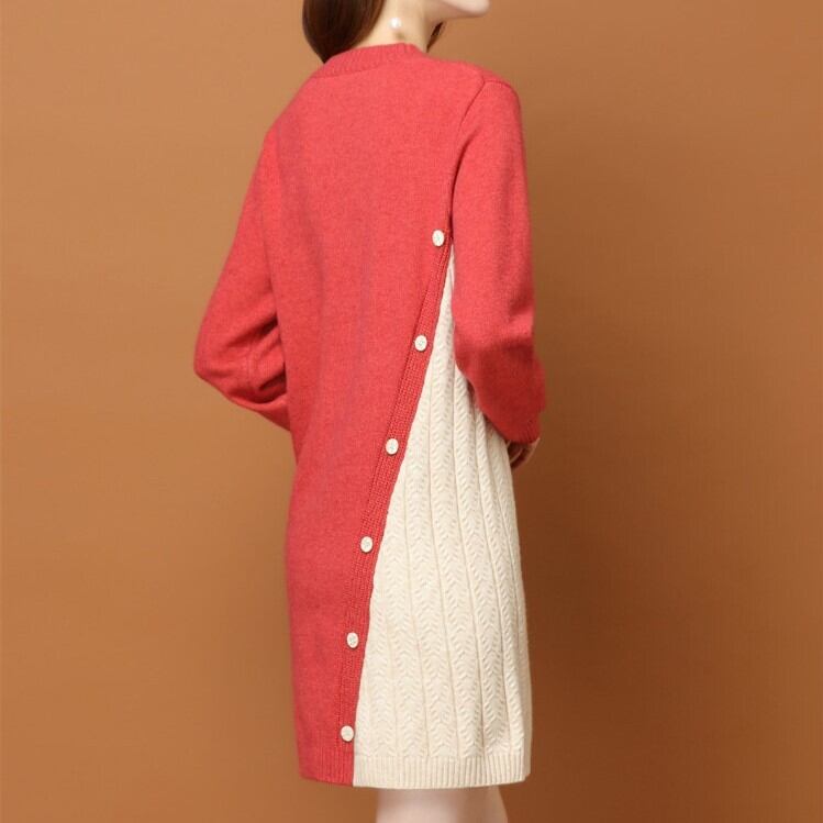 ワンピース スカート セーター 膝上 黒 ブラック 赤 レッド 緑 グリーン ベージュ 長袖 襟なし スクープネック ストレート 切り替えデザイン ボタン かわいい 大人可愛い きれいめ シンプル 大人 上品 おしゃれ レトロ 大人女子 こなれ感 個性的 主役級 存在感 無地 バイカラー 秋 20代 30代 通勤 デート お出かけ 女子会 休日 旅行 ホテル ガーデン レストラン 着回し 普段使い 韓国 韓国系 オルチャン ファッション コーデ スタイル サイズ S M L XL 色展開