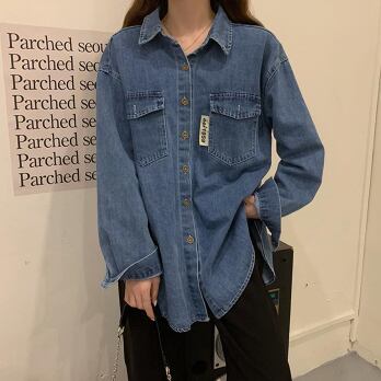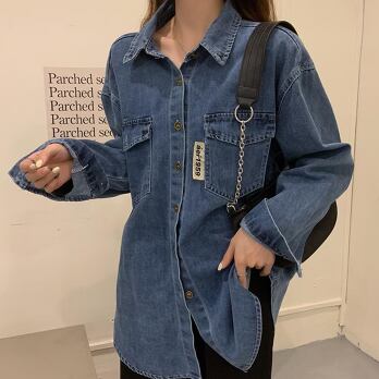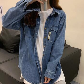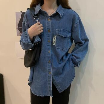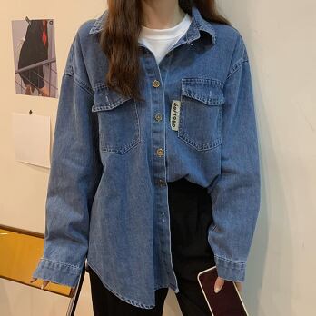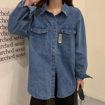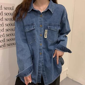 デニムシャツ トップス カジュアル ブルー 青 レギュラー丈 袖あり 長袖 襟付き ストレート シングルブレスト ボタン 大人女子 大人 上品 おしゃれ デイリーウェア レトロ レトロ風 こなれ感 ルーズ シルエット ラフ 主役級 存在感 無地 春 スプリング 秋 オータム 20代 10代 30代 40代 レディース 女性用 学生 学校 通学 休日 おうち らくちん 公園デビュー 着回し 普段使い トレンド ファッション コーデ 定番 スタイル S M L