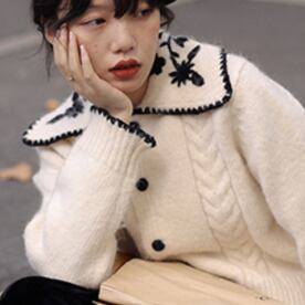 襟のデザインがかわいいニットカーディガンです!