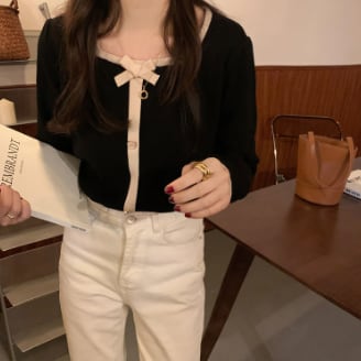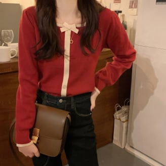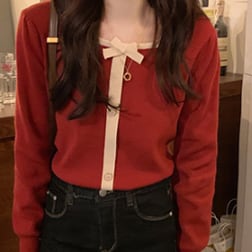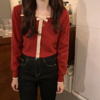 カーディガン トップス セーター シンプル スイート ブラック 黒 レッド 赤 レギュラー丈 袖あり 長袖 スクエアネック スリム 細身 タイト シングルブレスト ボタン リボン 大人女子 大人 上品 おしゃれ きれいめ シンプル エレガント デイリーウェア レトロ レトロ風 こなれ感 キュート かわいい 女子 個性的 デザイン 主役級 存在感 無地 春 スプリング 秋 オータム 20代 10代 レディース 女性用 デート お出かけ 女子会 食事会 トレンド S M L