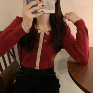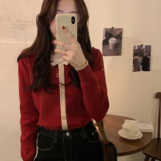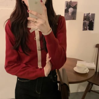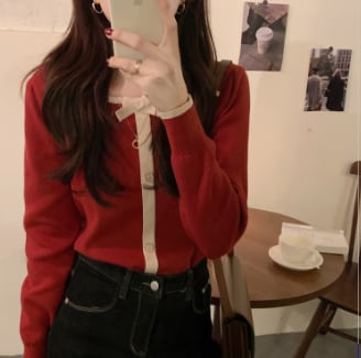 また、トレンドのスクエアネックとボタンデザインで、レトロ風な雰囲気も漂います。長袖のレギュラー丈は、秋や春のデイリーウェアとしておすすめです。特にブラックとレッドの2色は、女性らしいキュートな雰囲気を出してくれます。