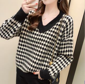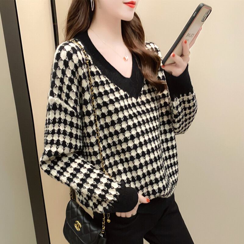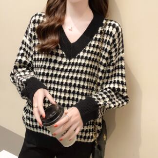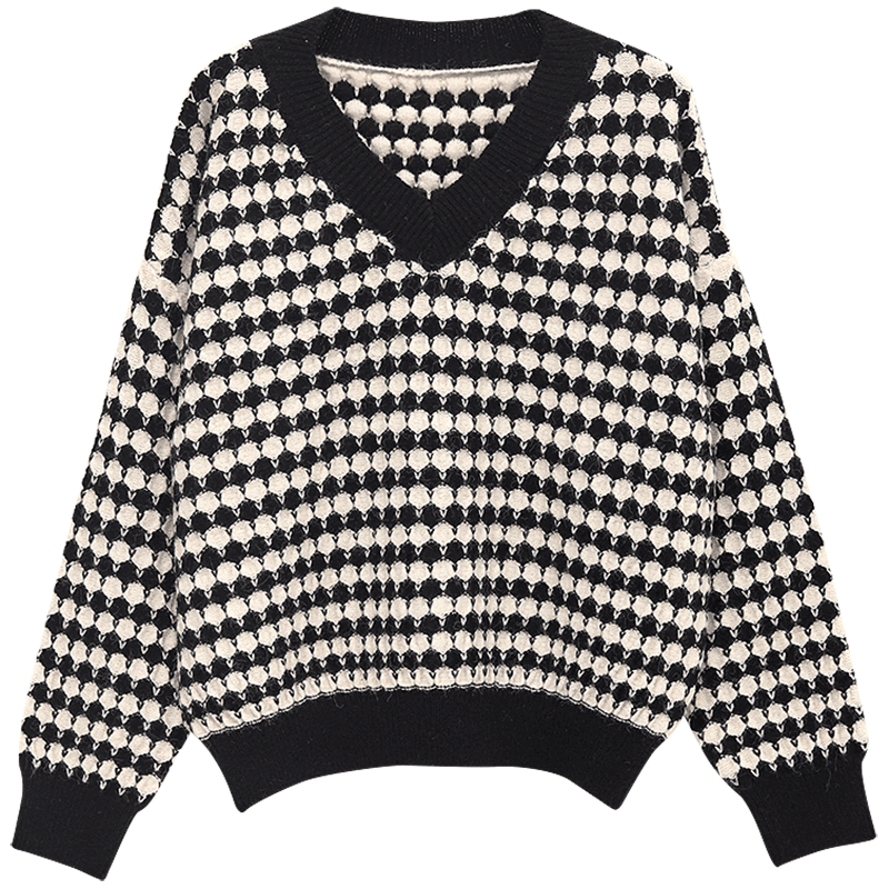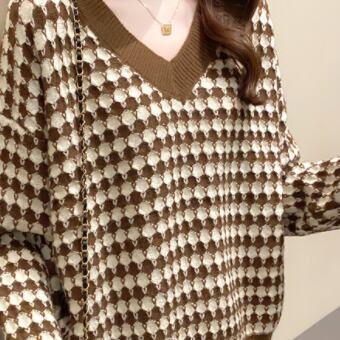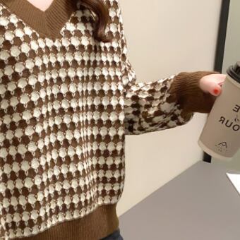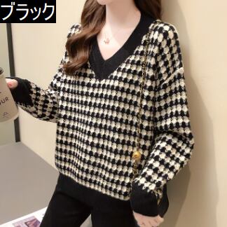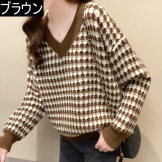 Vネックプルオーバーセーター トップス セーター ミディアム丈 袖あり 長袖 Vネック 襟なし ストレート ニット きれいめ シンプル カジュアル 大人 上品 おしゃれ かっこいい レトロ 大人可愛い 大人女子 こなれ感 ルーズ 個性的 クール モード系 セクシー エレガント モダン 主役級 存在感 チェック柄 春 秋 レディース 女性用 OL 通勤 学生 通学 デート お出かけ 休日 旅行 着回し 普段使い ファッション コーデ スタイル 新作 トレンド 流行 インスタ映え 海外 イメチェン 好感度