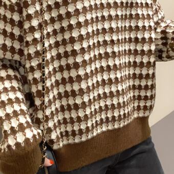 個性的なチェック柄のVネックプルオーバーセーターです。