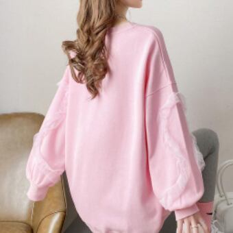季節に合わせて使える、トレンド感のあるトップスをお探しの方には、このトップスがオススメです。ミディアム丈で、袖があるデザインが特徴的で、個性的なボリューム袖が印象的です。ラウンドネックとワイドシルエットで、カジュアルにもおしゃれにも着こなせます。また、トレーナー生地を使用しているので、着心地も快適です。変化に乏しい毎日も、このトップスがあれば、自分を変える一歩を踏み出せそうです。ママやマタニティの方にも、体形をカバーしつつ、トレンド感を演出できます。是非、公園デビューや旅行などのアウトドアシーンから普段使いまで、幅広くお役立てください。