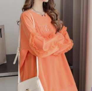 女性らしいビタミンカラーのトレーナーです。