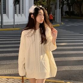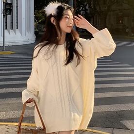 ルーズニット トップス セーター シンプル ホワイト 白 レギュラー丈 袖あり 長袖 ラウンドネック ストレート ワイド 大人女子 大人 上品 おしゃれ デイリーウェア レトロ レトロ風 こなれ感 ルーズ シルエット ラフ 個性的 デザイン 主役級 存在感 無地 秋 オータム 冬 ウインター 20代 10代 30代 レディース 女性用 学生 学校 通学 デート お出かけ 女子会 食事会 着回し 普段使い 暖かい 防寒 S M L XL 2XL 大きいサイズ