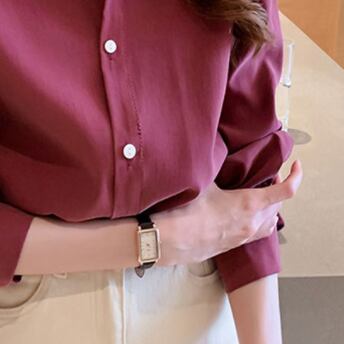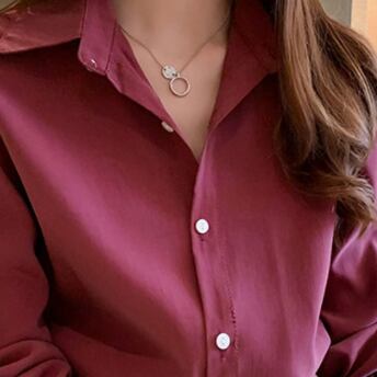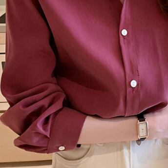 シンプルながらクラシカルな印象を与える、長袖Vネック襟付きシャツが登場。上品で清潔感のある無地のデザインは、オフィスやビジネスシーンはもちろん、デートや休日のお出かけにも使える、大人女子に必須のアイテムです。