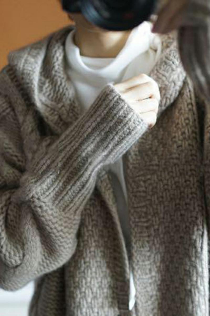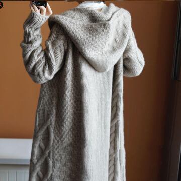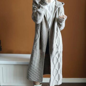 フード付きのカジュアルなニットコート