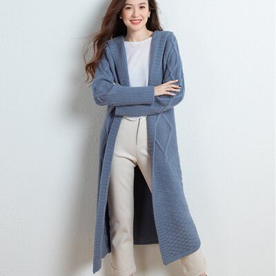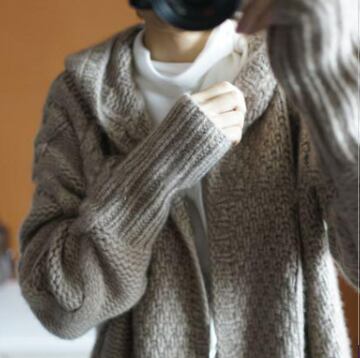 温かくて、おしゃれなフード付きニットコートをご紹介します。ミドル丈で、袖ありの長袖デザインは、秋冬の大人女子にぴったり。カジュアルからオフィスまで着回し可能な、主役級の存在感があります。