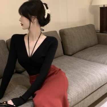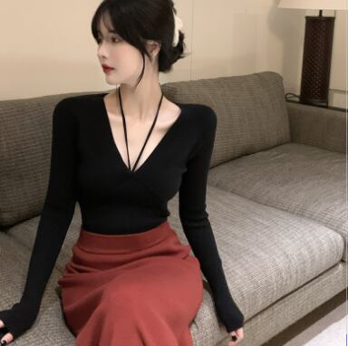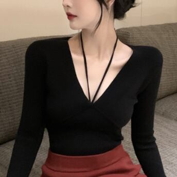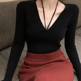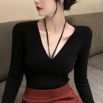 Vネックタイトニットトップス トップス カットソー ニット 長袖 Vネック タイト 細身 ストレート リボン 伸縮性 ニット お得 大人可愛い きれいめ シンプル 大人 上品 おしゃれ かっこいい レトロ エキゾチック 大人女子 個性的 クール モード系 セクシー エレガント 主役級 存在感 無地 秋 冬 クリスマス バレンタイン 10代 20代 30代 40代 レディース ママ 女の子 オフィス OL デート 女子会 休日 イベント ホテル レストラン 着回し インスタ映え フリーサイズ 黒