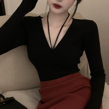 Vネックタイトニットトップスです。