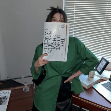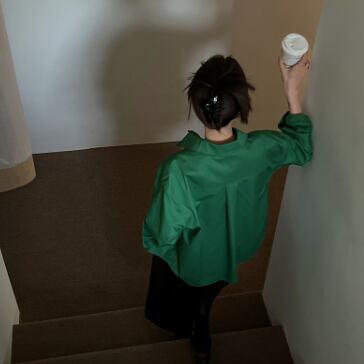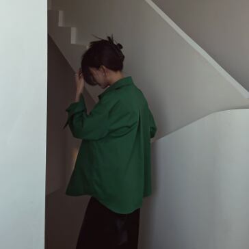 ラフな雰囲気のグリーンカラーが綺麗な長袖シャツです。