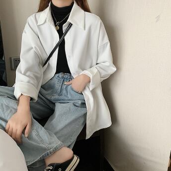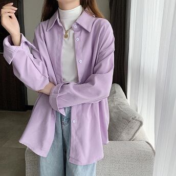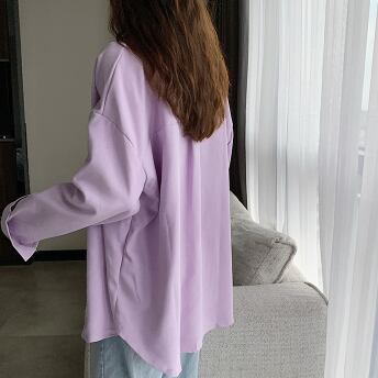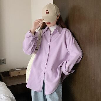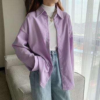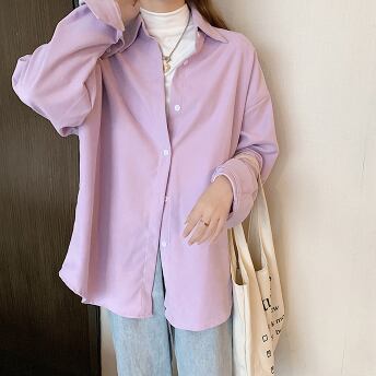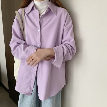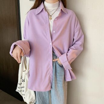 春カラーシャツ トップス シャツ ブラウス シンプル ホワイト 白 ブルー 青 パープル 紫 ミディアム丈 袖あり 長袖 襟付き ストレート シングルブレスト ボタン ポリエステル 大人女子 大人 上品 おしゃれ きれいめ シンプル デイリーウェア レトロ レトロ風 こなれ感 ルーズ シルエット ラフ 主役級 存在感 無地 春 スプリング 秋 オータム 20代 30代 40代 レディース 女性用 オフィス ビジネス OL 通勤 学生 学校 通学 S M L XL 2XL