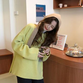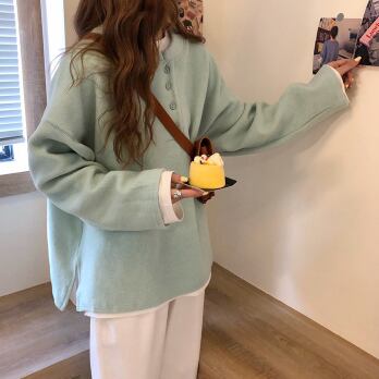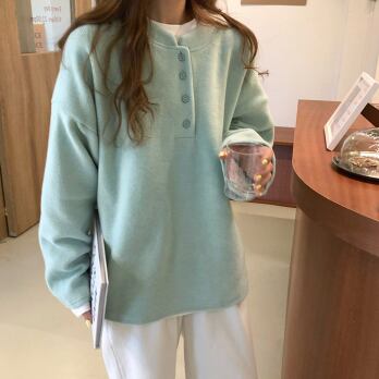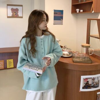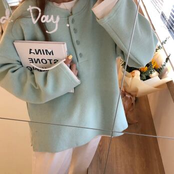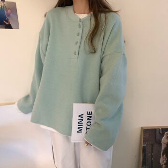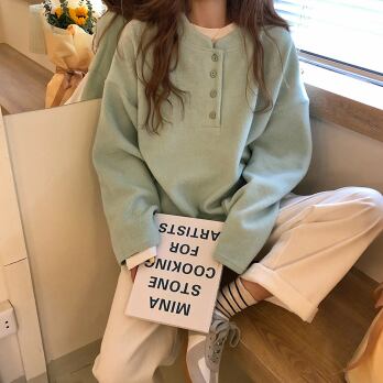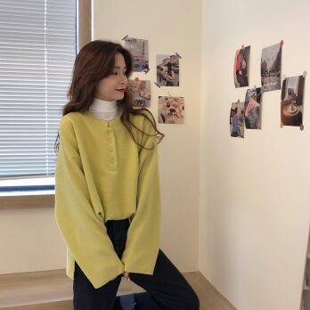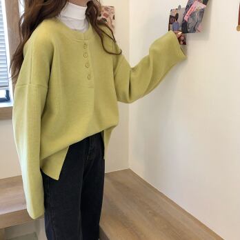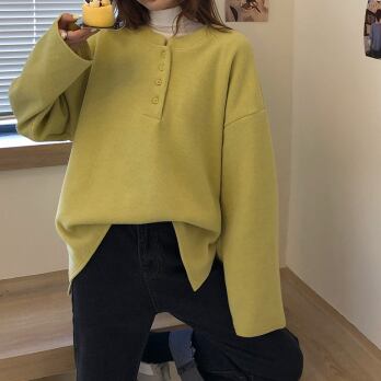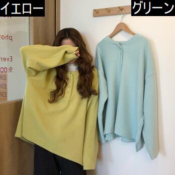 プルオーバー トップス シンプル カジュアル グリーン 緑 イエロー 黄色 レギュラー丈 袖あり 長袖 ラウンドネック ボタン 大人女子 大人 上品 おしゃれ デイリーウェア レトロ レトロ風 こなれ感 ルーズ シルエット ラフ キュート かわいい 女子 個性的 デザイン 主役級 存在感 無地 春 スプリング 秋 オータム 20代 10代 30代 レディース 女性用 学生 学校 通学 休日 おうち らくちん 着回し 普段使い ファッション コーデ L XL