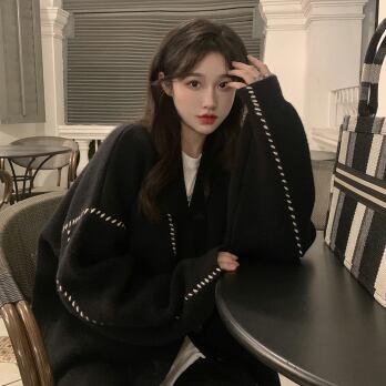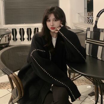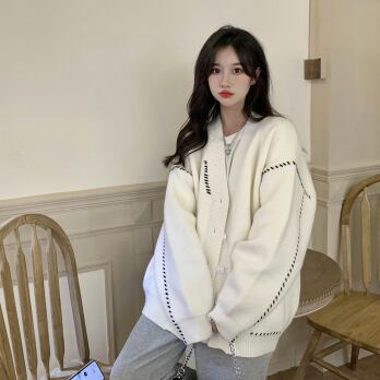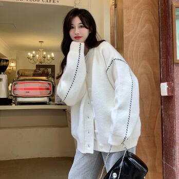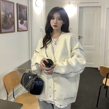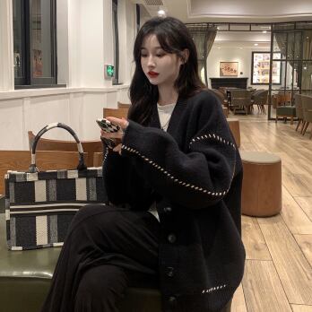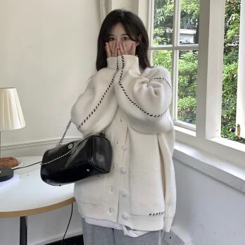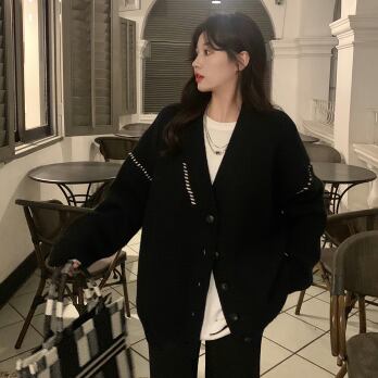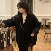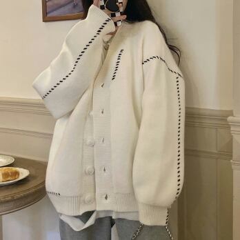 ビッグカーディガン トップス セーター シンプル ブラック 黒 ホワイト 白 ミディアム丈 袖あり 長袖 Vネック ワイド シングルブレスト ボタン 大人女子 大人 上品 おしゃれ デイリーウェア レトロ レトロ風 こなれ感 ルーズ シルエット ラフ 個性的 デザイン 主役級 存在感 柄 ライン 秋 オータム 冬 ウインター 20代 10代 30代 40代 レディース 女性用 オフィス ビジネス OL 通勤 学生 学校 通学 L XL 2XL 3XL 大きいサイズ