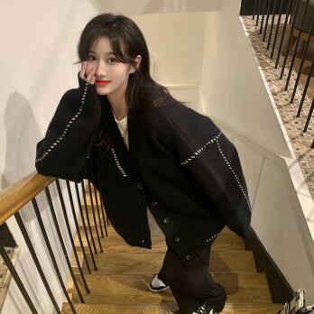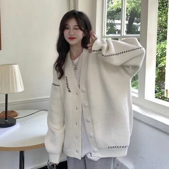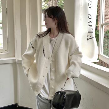 ルーズなサイズ感で華奢見せも叶うニットカーディガンです!