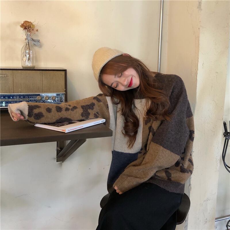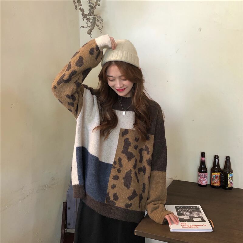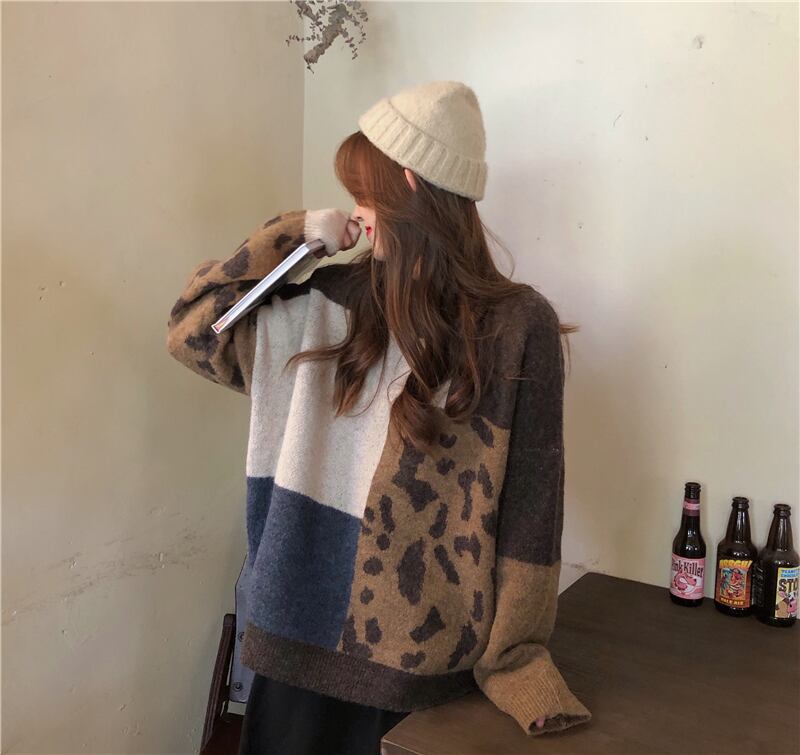 セーター トップス プルオーバー ミディアム丈 長袖 ラウンドネック ストレート 切り替えデザイン ふわふわ カラーブロッキング 厚手 かわいい 大人可愛い カジュアル 大人 おしゃれ お洒落 かっこいい レトロ 大人女子 こなれ感 ラフ ルーズ 個性的 クール 主役級 存在感 抜け感 柄 ヒョウ柄 ブロック 秋 冬 10代 20代 通学 デート お出かけ 女子会 休日 着回し 普段使い 重ね着 ファッション コーデ スタイル 暖かい インスタ映え インパクト サイズ S M L XL 秋カラー