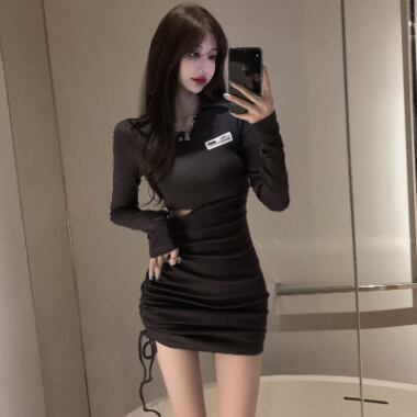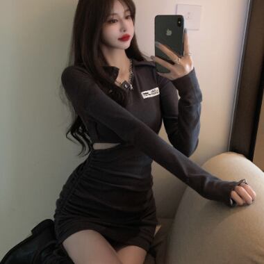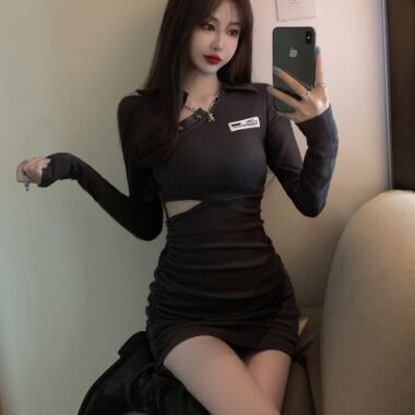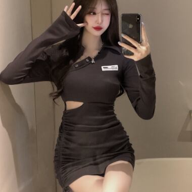 タイトで個性的デザインのミニ丈ワンピースです。