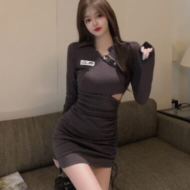 タイトなシルエットが美しいミニ丈ワンピース。長袖で着用可能なので、秋から春まで長く着用できる万能アイテム。綿素材で快適な着心地と、カジュアルからきれいめまで幅広いスタイリングに対応可能なデザインが人気。