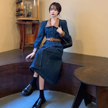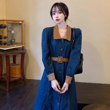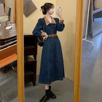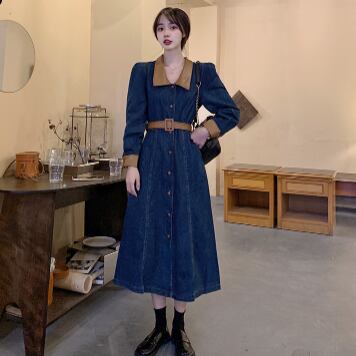 デニムロングワンピース ワンピース シャツ ロング丈 長袖 襟付き フレア Aライン ベルト ウエストマーク 綿 デニム ブルーデニム お得 かわいい 大人可愛い きれいめ シンプル カジュアル 大人 上品 おしゃれ かっこいい 大人可愛い 大人女子 ラブリー キュート 無地 春 秋 冬 10代 20代 30代 40代 レディース ママ 女の子 オフィス OL 通勤 学生 通学 デート お出かけ 公園デビュー 女子会 休日 着回し ファッション コーデ 楽ちん モテ L XL 2XL 3XL 4XL