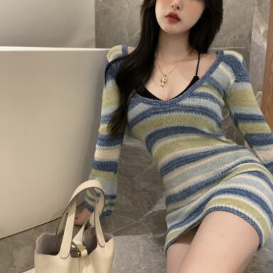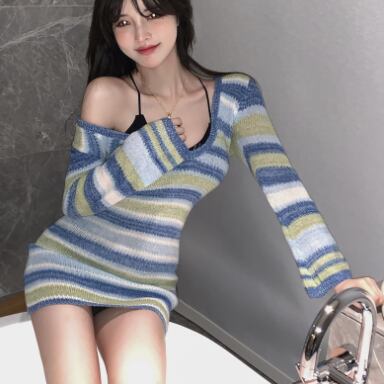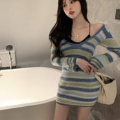 タイトなボーダー柄ミニ丈ワンピースです。
