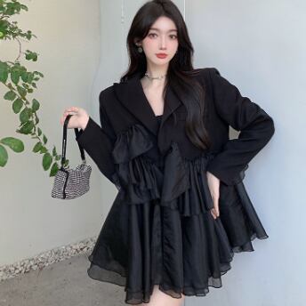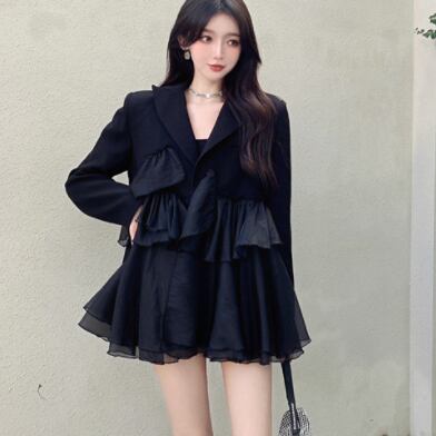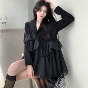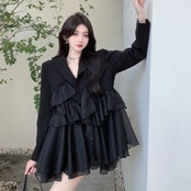 ブラックフリルミニ丈ワンピース ワンピース ミニ丈 長袖 Vネック Aライン シフォン フリル 異素材MIX かわいい 大人可愛い きれいめ 大人 上品 おしゃれ かっこいい 大人可愛い 大人女子 こなれ感 ラブリー キュート 個性的 クール モード系 存在感 フォーマル 無地 春 秋 冬 誕生日 謝恩会 結婚式 二次会 披露宴 クリスマス バレンタイン 10代 20代 30代 40代 レディース ママ 女の子 学生 デート お出かけ パーティー イベント インスタ映え フリーサイズ 大きめ ゆったり