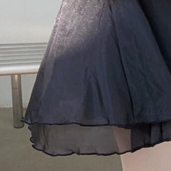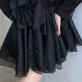 素材にもこだわった一枚。シフォンと別素材を重ねたフリルは、ふわりとした軽やかさがあり、この上ない華やかさを生み出してくれます。ボディ部分は、滑らかなタッチの素材を使用し、着心地も抜群です。