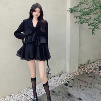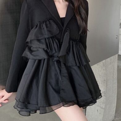 ブラックフリルミニ丈ワンピースです。
