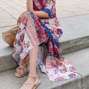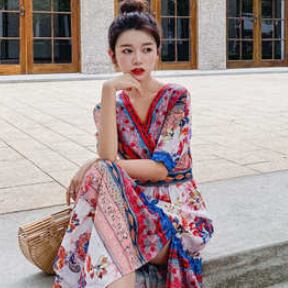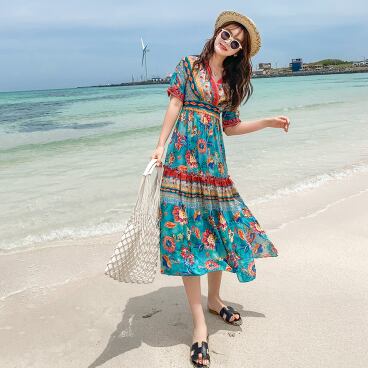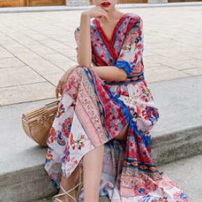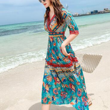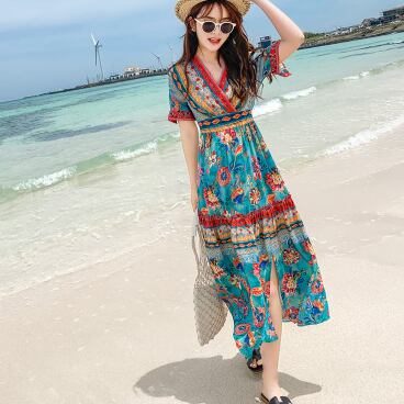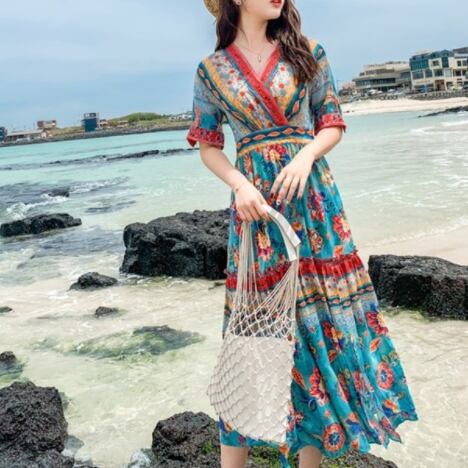 サマードレス ワンピース 半袖 Vネック かわいい 大人可愛い おしゃれ お洒落 レトロ 大人可愛い 大人女子 ラブリー キュート ガーリー 個性的 セクシー エレガント 主役級 存在感 柄 花柄 フラワー 夏 10代 20代 30代 レディース 女性用 女の子 デート お出かけ お泊まり 休日 リゾート 旅行 海 プール 高原 韓国 韓国系 ファッション コーデ スタイル モテ 新作 定番 送料無料 トレンド 流行 インポート 海外 人気 女子力 大人カジュアル ロング丈 ミモレ丈 体型カバー