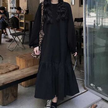 シンプルなデザインで、どんなスタイルにも合わせやすいロングワンピースが登場!黒色だから上品で大人っぽく、スマートな印象を与えます。シルエットは細身でストレートなので、きれいめなスタイルにもカジュアルな着こなしにも合わせやすいですよ。袖は長袖でこれからの季節や冷房対策にも最適です。春は薄手のカーディガンやデニムジャケットを羽織ったり、秋冬はレザージャケットやブルゾンを合わせると、こなれ感たっぷりのコーデに仕上がります。