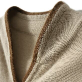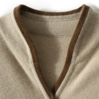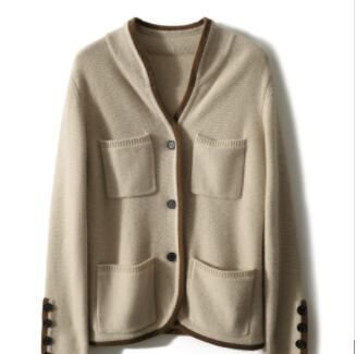 4つ付いたポケットがカジュアルなバイカラートリミングのニットカーディガン。