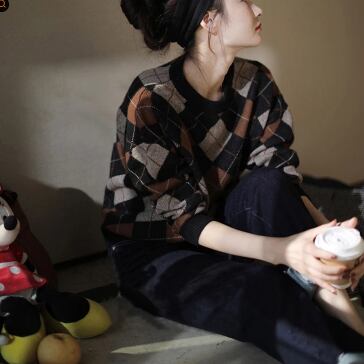 オーバーサイズ アーガイルチェック柄 菱型 トップス セーター ミディアム丈 袖あり 長袖 ドロップショルダー クルーネック ニット かわいい 大人可愛い きれいめ シンプル カジュアル 上品 レトロ おしゃれ お洒落 大人女子 シック トラディショナル 格子柄 春 秋 冬 レディース 女性用 ママ 女の子 学生 通学 デート お出かけ 女子会 休日 着回し 普段使い 重ね着 韓国系 オルチャン ファッション コーデ 体系カバー 定番 S M L XL 大きめ ゆったり サイズ コーヒーブラウン