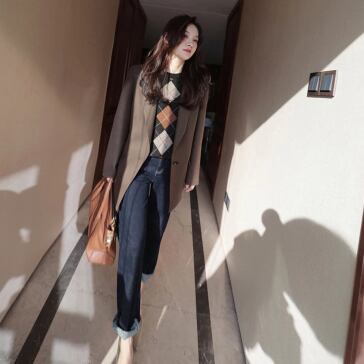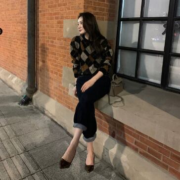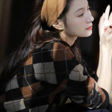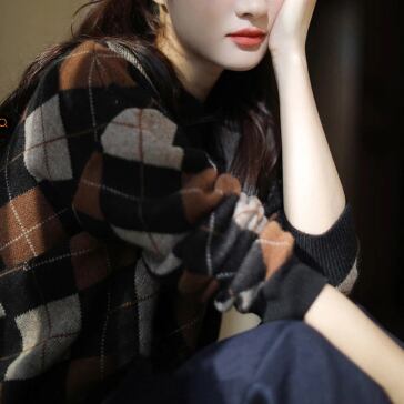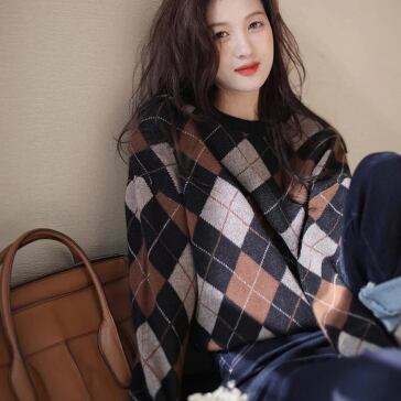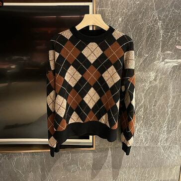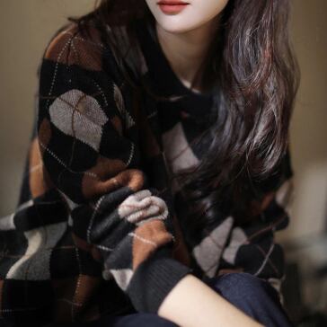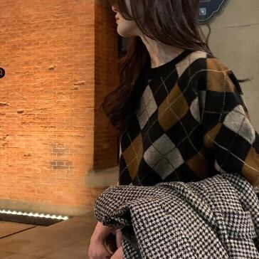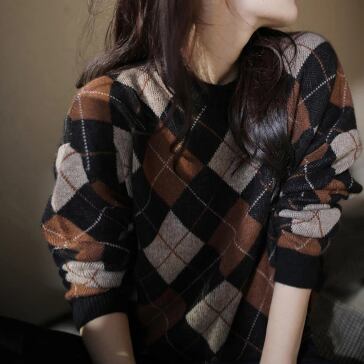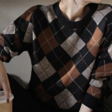 落ち着いたカラー配色が大人っぽいアーガイルチェック柄のニット。